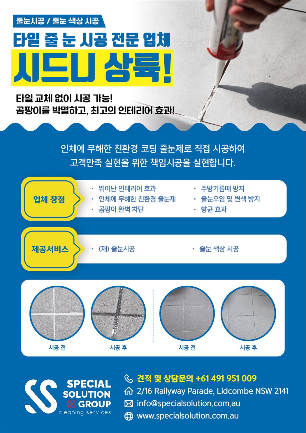 시드니 최.초 줄눈시공업체 스페셜 솔루션입니다.