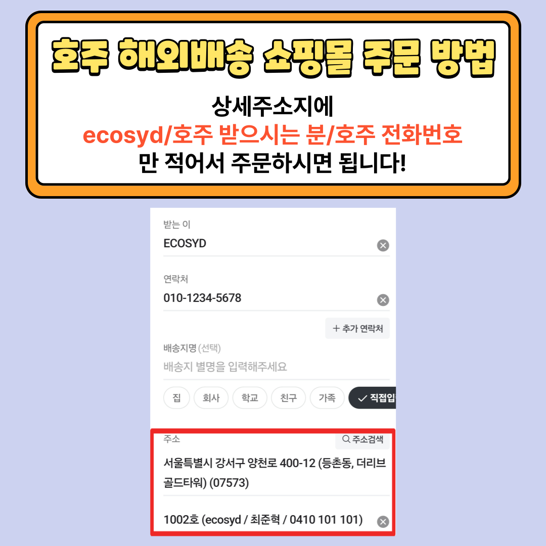 호주에서도 한국 제품을 편하게 받아보실 수 있도록