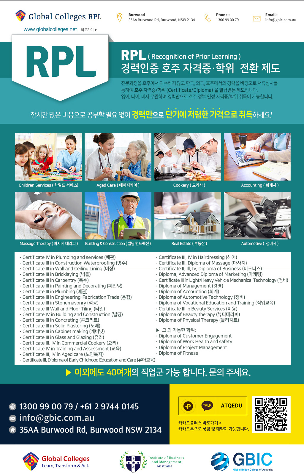 RPL 을 통해 호주에서 인정받는 학위를 취득하세요.
