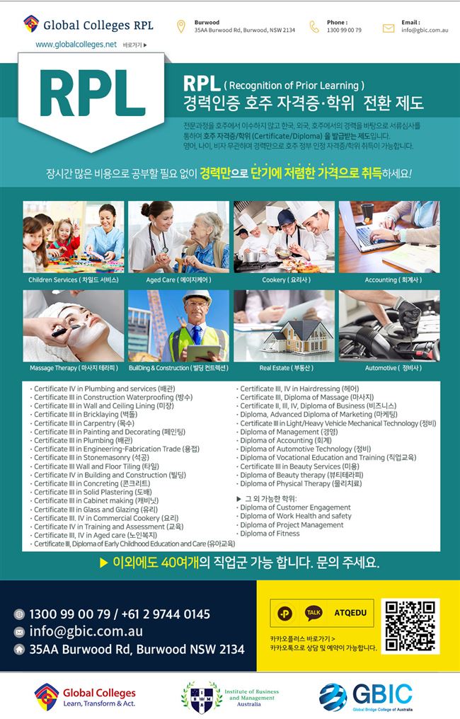 RPL은 한국에서 취득한 경력 및 학력 이나 호주의 경력을 호주 학위로 전환하는 것으로