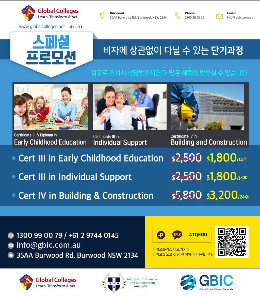 호주에서 장기비자를 받고자 하시는분들은 본과정을 통해 디플로마로 편입하고 학생비자 만료 후