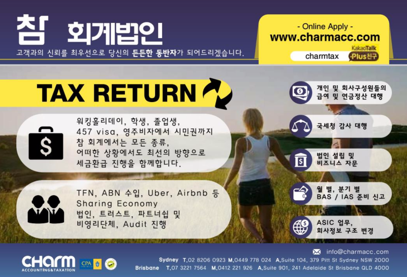 • 참 회계법인은 시드니에서만 운영하고 있으며 브리즈번에는 참 회계법인이 없으니 정정바랍니다