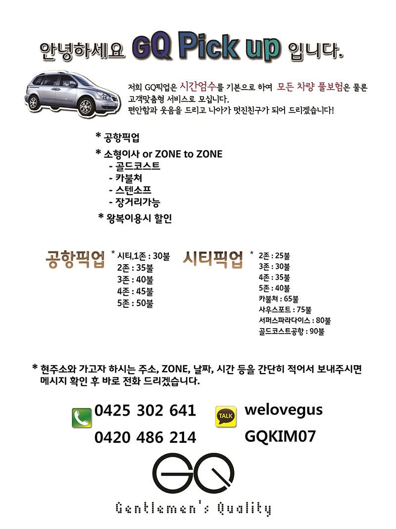 브리즈번 오실때는 저희 GQ pick up 을 이용해주세요.