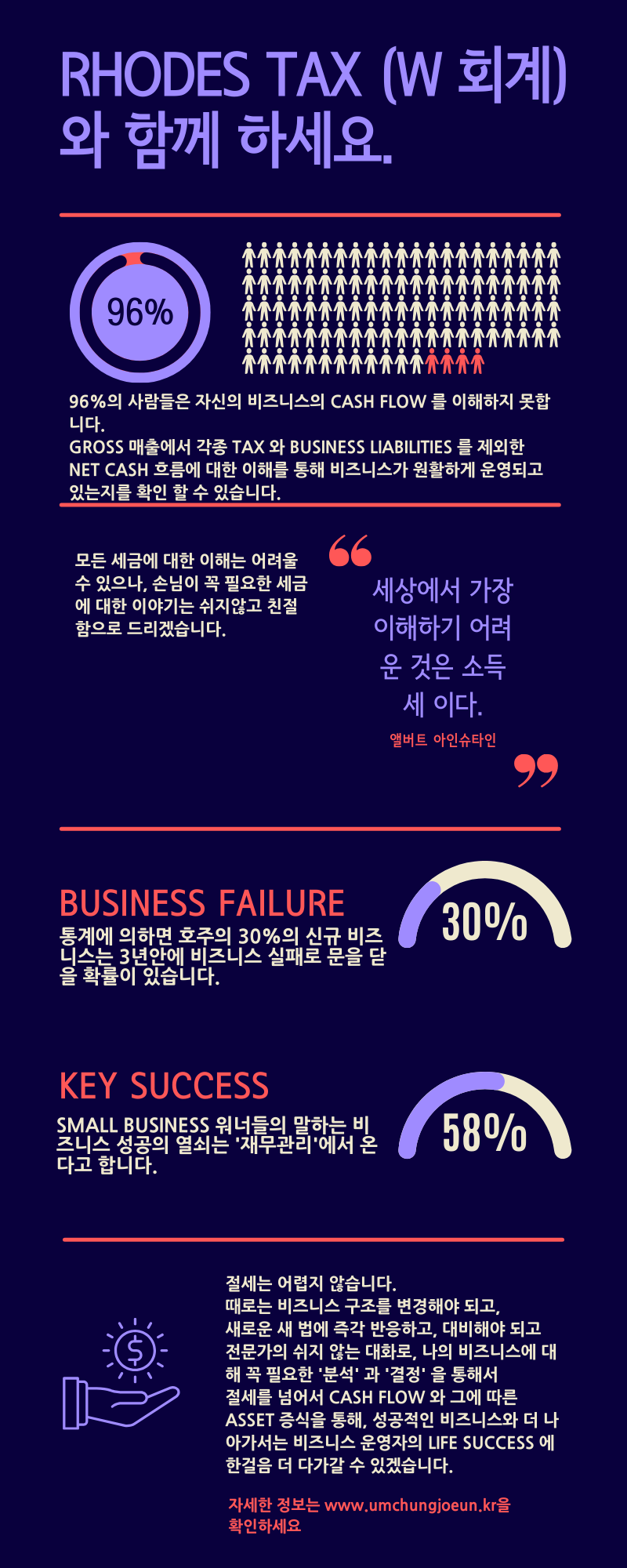 10년 이상의 경력 있는 회계사들이 Tax Saving 이상의 비즈니스 성공에 필요한 동반자가 될 수 있도록 준비해 왔습니다.